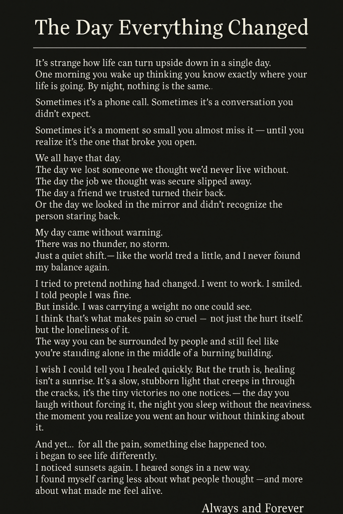 I realized that sometimes the day everything changes is also the day we begin to truly live.
