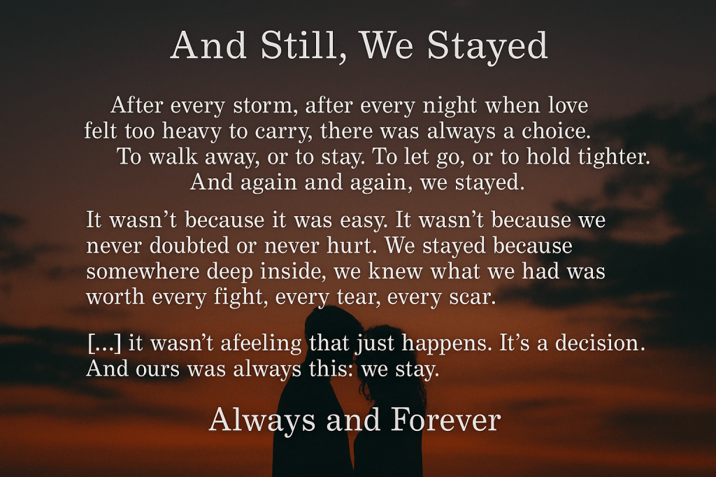 After every storm, after every night when love felt too heavy to carry, there was always a choice. To walk away, or to stay. To let go, or to hold tighter. And again and again, we stayed.