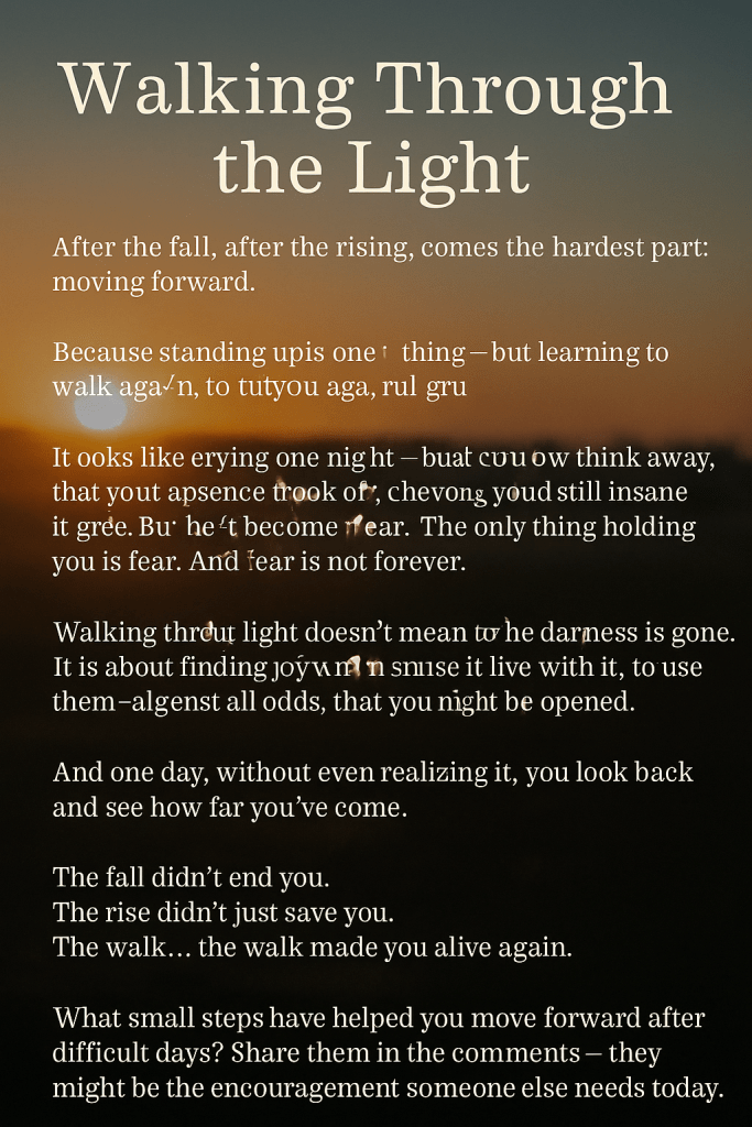 Some days it’s one step. Some days it’s many. Some days I stumble and fall again, but each time I do, I rise quicker than before. Because now I know that falling is not failure — it is part of the journey.