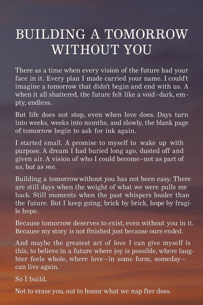 Every plan I made carried your name. I couldn’t imagine a tomorrow that didn’t begin and end with us. And when it all shattered, the future felt like a void — dark, empty, endless.