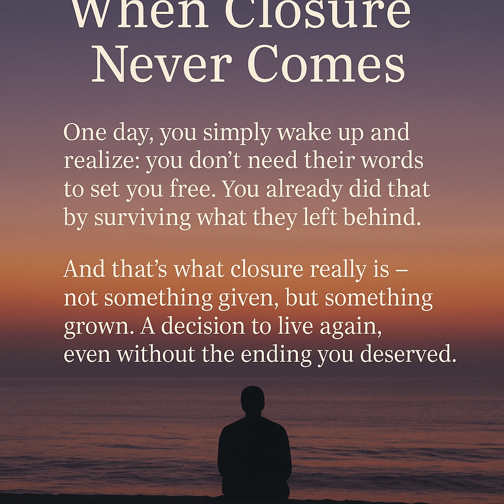 💬 Have you ever had to find closure on your own? Tell me how you did — your strength might be the guide someone else needs.