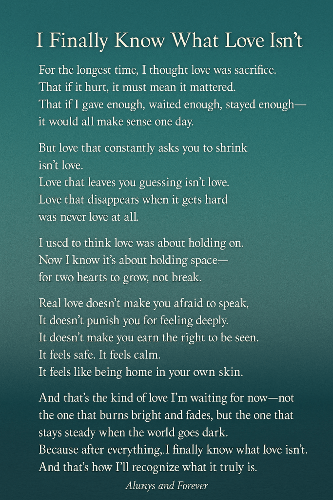 💬 What have you learned love isn’t? Your story might remind someone they deserve something gentler too.